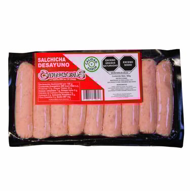 La salchicha tipo desayuno, es un producto precocido y embutido en funda de colágeno.